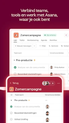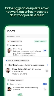 Navigeer moeiteloos door de complexiteit van teamwerk en breng uw projecten naar een hoger niveau. Asana transformeert de manier waarop u en uw team samenwerken, of u nu op kantoor bent, thuis of onderweg. Dit intuïtieve platform stelt u in staat om overal vandaan gefocust te blijven en projecten soepel te laten verlopen, direct vanaf uw mobiele apparaat of via de webapplicatie. Asana brengt helderheid en structuur in elke taak, zodat uw team altijd synchroon blijft, ongeacht de locatie.