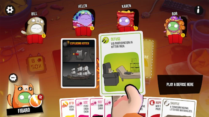 EXPLODING KITTENS® 2 biedt meer dan alleen spannende gameplay; het is een complete ervaring. Personaliseer je avataren met de hipste outfits van het seizoen en zorg ervoor dat je opvalt in de menigte. Druk je reacties op het spel uit met je eigen samengestelde emoji-sets, perfect om je tegenstanders te sarren met een scherpzinnige sneer. Of je nu je vaardigheden aanscherpt tegen onze deskundige AI, of indruk maakt op je moeder met je bruisende sociale leven via online multiplayer, er is een modus voor iedereen. En met de levendige animaties komen de kaarten, vooral die impactvolle 'Nee'-kaarten, nu echt tot leven en voelen ze anders aan dan ooit tevoren. Hou je kalm, visualiseer rustgevende golven en trek een kaart!