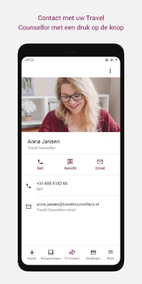 Blijf overal ter wereld moeiteloos in contact met uw persoonlijke reisadviseur. myTC zorgt voor naadloze communicatie, waar uw reizen u ook brengen. Geniet van zorgeloos reizen met directe ondersteuning en advies, waar en wanneer u het nodig heeft.
