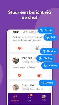 Droom je van een actieve levensstijl, maar mis je de juiste sportmaatje of motivatie? Sportpartner maakt het vinden van een geschikte sportpartner in jouw buurt verrassend eenvoudig. Binnen enkele ogenblikken creëer je een persoonlijk profiel en ontdek je direct een breed scala aan enthousiaste leden bij jou in de omgeving. Van fanatieke hardlopers tot gezellige wandelgroepen, en van padelpartners tot fitnessmaatjes; de perfecte match om samen je doelen te bereiken is dichterbij dan je denkt. Begin vandaag nog met het leggen van waardevolle contacten via ons intuïtieve chatsysteem.