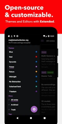 Standard Notes hecht het grootste belang aan transparantie en vertrouwen in uw privacy. Daarom is de applicatie volledig open-source. Wanneer Standard Notes beweert dat uw aantekeningen worden versleuteld met toonaangevende XChaCha-20 encryptie en dat alleen u ze kunt lezen, hoeft u dit niet op basis van beloftes aan te nemen; onze code is wereldwijd openbaar voor controle. Deze toewijding aan openheid onderstreept de filosofie van eenvoud en duurzaamheid die Standard Notes drijft; de visie is dat u niet elk jaar een nieuwe notitie-app hoeft te zoeken, maar een partner voor de lange termijn. Voor gebruikers die behoefte hebben aan nog geavanceerdere functionaliteit, is er het optionele betaalde programma Standard Notes Extended. Dit programma ontsluit krachtige tools zoals gespecialiseerde productiviteitseditors (denk aan Markdown, Code, Spreadsheets), prachtige thema's voor een persoonlijke ervaring (zoals Midnight, Focus, Solarized Dark) en robuuste cloudoplossingen. Deze omvatten dagelijkse back-ups van uw versleutelde gegevens, direct geleverd aan uw e-mailinbox of naar uw favoriete cloudprovider.