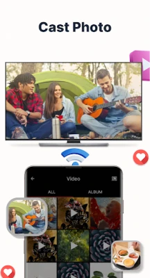 TV Cast for Chromecast maakt het eenvoudig om je telefoon snel naar de TV te casten. Geniet van je mediabibliotheek op diverse smart-tv's zoals Chromecast, Roku, Fire TV, Xbox, Samsung en LG. Voorkom vermoeide ogen door een te klein scherm en bekijk comfortabel je content op een groot scherm, waar je ook zit.